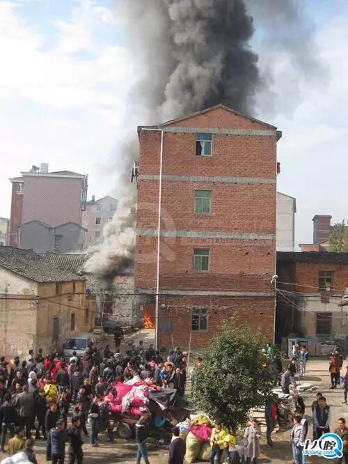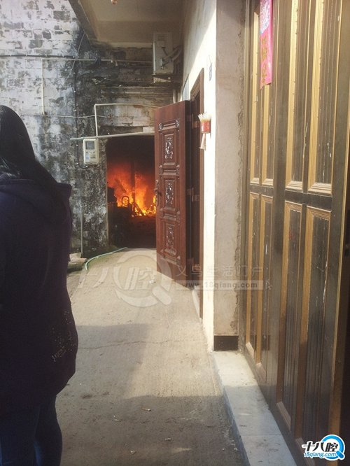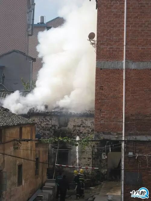 九點多我還賴在床上,突然聽到外面有人大喊著火啦,著火啦!??!嚇?biāo)?,馬上驚醒,以為是我家樓下著火了,披了件衣服跑下樓,原來是隔壁老房子著火了。開始只是一點煙,走進去一看,已經(jīng)有火光了。