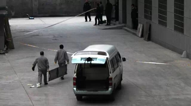 站在隔壁一家企業(yè)在建的廠房內(nèi),記者看到了制襪公司內(nèi)的場景。大院內(nèi)停著4輛警車,2號樓和3號樓之間的過道上拉起了警戒線,法醫(yī)正在勘查現(xiàn)場。昨天下午5時許,義烏市殯儀館工作人員將跳樓男子的尸體運走。