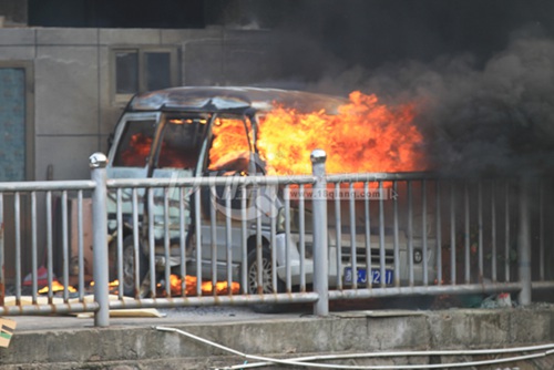 今天上午十點(diǎn)三十左右,在江東中路龍文教育樓下,一輛五菱小面包車(chē)自燃,現(xiàn)場(chǎng)濃煙滾滾,火光沖天,輪胎被燒爆了還發(fā)出低沉的爆炸聲,現(xiàn)場(chǎng)氣氛非常緊張。