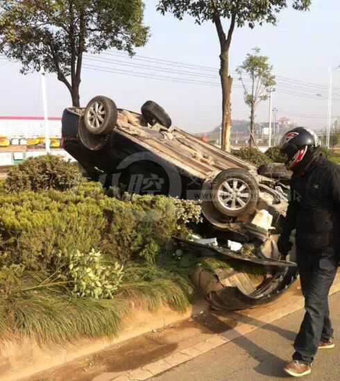 五州大道,趙龍集團前面發(fā)生吉利轎車翻車事故,據(jù)車主介紹是為了避讓一輛電瓶車發(fā)生的交通事故!