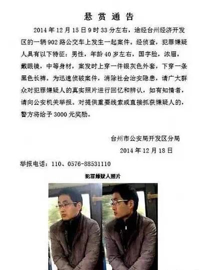 12月18日臺(tái)州公安局開(kāi)發(fā)區(qū)分局發(fā)布了“通緝公告”,3000元獎(jiǎng)勵(lì)懸賞搜尋犯罪嫌疑人。