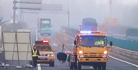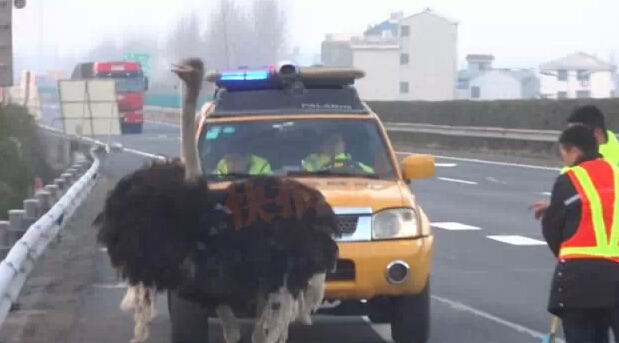 鴕鳥一般都是在動物園里看到的,可是今天有只傲嬌的鴕鳥,居然跑上了甬金高速!