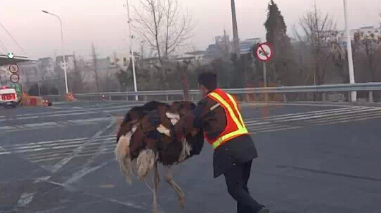 早上6時15分許,一只高2米多、重約150斤的雄性鴕鳥撞破了徐村收費站的護(hù)欄,逆向進(jìn)入了甬金高速進(jìn)行“晨跑”發(fā)泄精力。