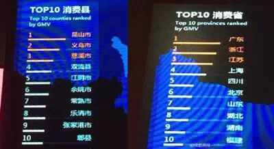 “雙十一”消費(fèi)排行榜出爐,榮獲“敗家”前五名的省份分別是:廣東、浙江、江蘇、上海、四川,四川較之去年的第六名上升一位;另在top10消費(fèi)縣中,義烏排第二