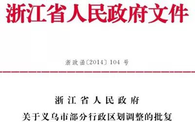 浙江省政府批示:義烏市部分行政區(qū)劃調(diào)整 新增福田街道