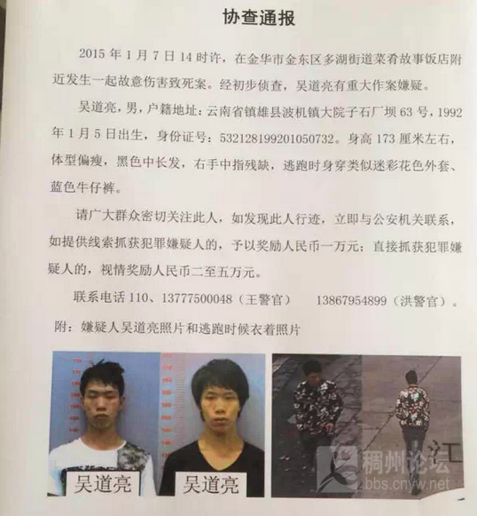目前金華警方已經發(fā)布協(xié)查通報,如果誰有發(fā)現(xiàn)過吳道亮的行跡,立即與金華公安機關聯(lián)系。