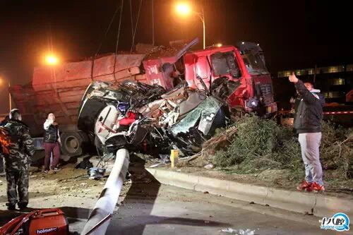 “卡車是超載的,沒有酒駕的行為?!睋?jù)知情人士透露,從城里往廿三里的方向,兩輛事故車先是刮擦,之后一起失控沖向綠化帶,沒想到正好綠化帶上有一根電線桿,大貨車和電線桿把轎車夾在中間。