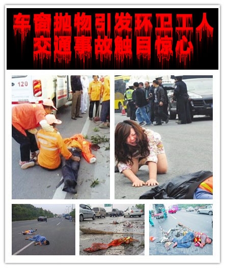 在環(huán)衛(wèi)工人被撞事故中,超過三成的事故是由“車窗拋物”所致;每年因在高速公路上撿拾從車窗拋出的垃圾被撞的死亡率占高速公路事故死亡率的1/3。