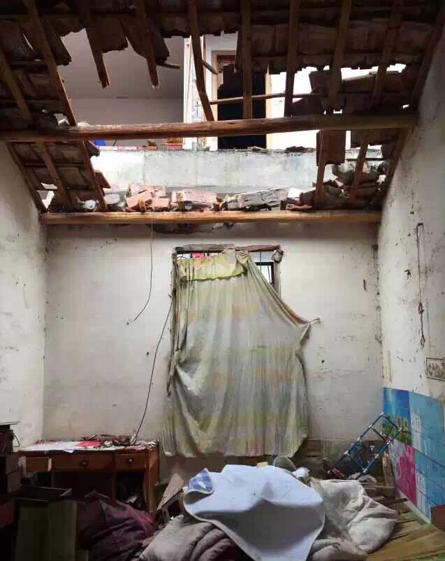 這一看,他慶幸又后怕:房頂很大一個洞,爆炸小樓的磚墻全砸在自家床上,要是人在屋里,真的要出大事了。