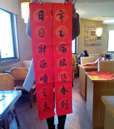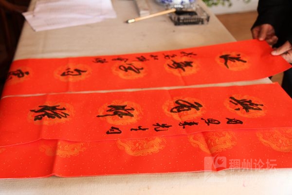 右邊白紙就是網(wǎng)友請書法家寫的春聯(lián)內(nèi)容,想想要到手的春聯(lián),是否還有點小激動呢?