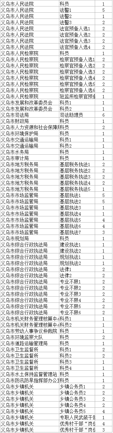 從《2015年浙江省各級機(jī)關(guān)公務(wù)員錄用計(jì)劃一覽表》來看,義烏市公務(wù)員計(jì)劃招考人數(shù)算上省人社廳代招的,共138人