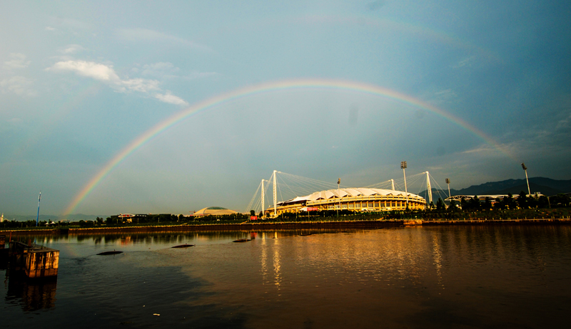 作者:何建人 作品名稱:美麗彩虹映江濱