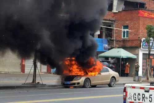 3月1日,義烏蘇溪馬丁地段一輛賓利自燃