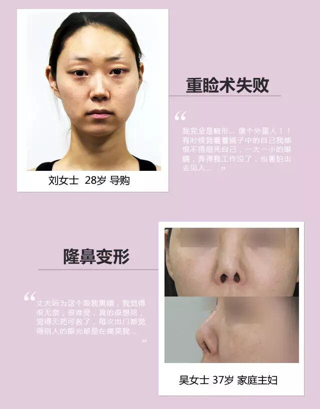 現在,您是否和她們一樣,正因為整形失敗遭受愛情婚姻以及命運的挫折?