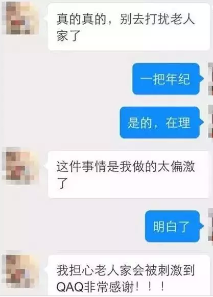 最后女生還私信給記者一句:真的真的,別去打擾老人家了。
