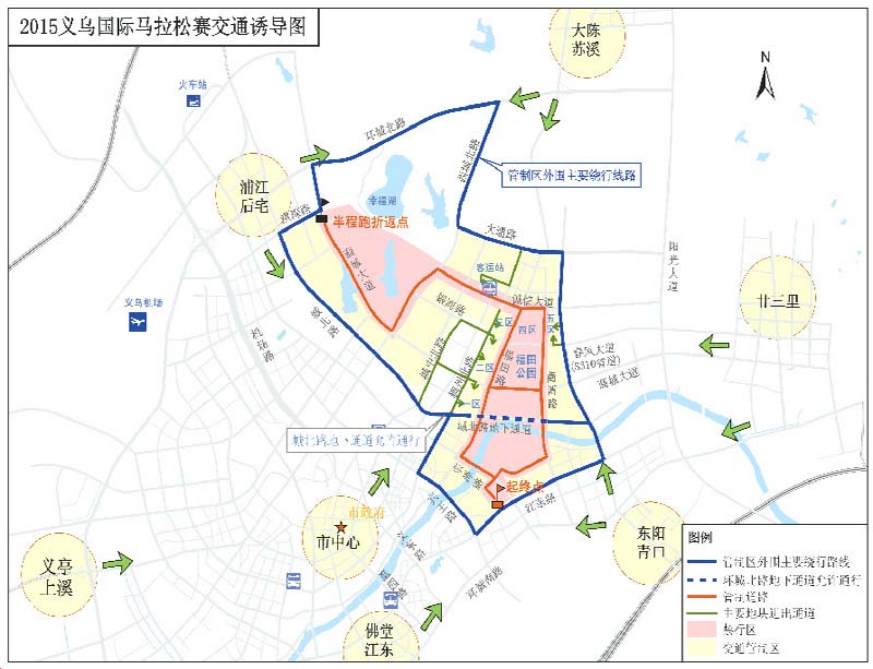 ■義烏市區(qū)往國(guó)際商貿(mào)城方向:按原線路行駛至交通管制區(qū)域后就近調(diào)頭或繞行。