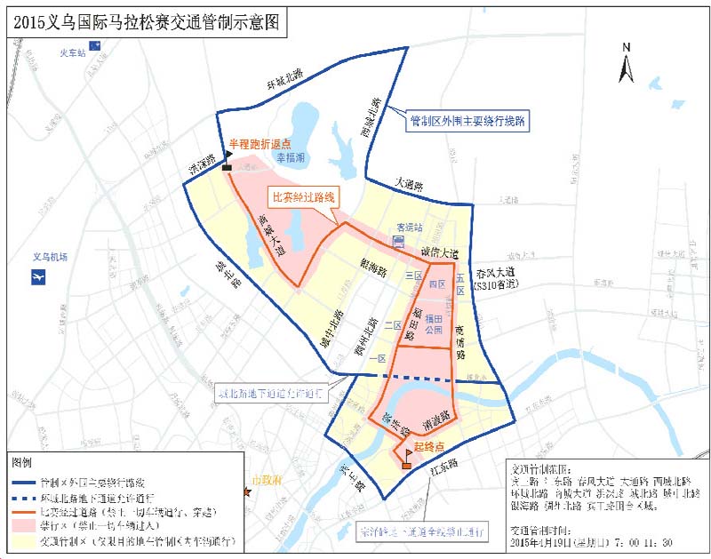 ■交通管制:據(jù)義烏交警部門(mén)介紹,4月19日上午7時(shí)至11時(shí)30分,賓王路-江東路-春風(fēng)大道(S310省道)-大通路-西城北路-環(huán)城北路-商城大道-洪深路-城北路-城中北路-銀海路-稠州北路-賓王路圍合區(qū)域(不含以上道路)將進(jìn)行臨時(shí)交通管制(詳見(jiàn)示意圖)。