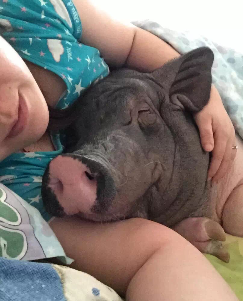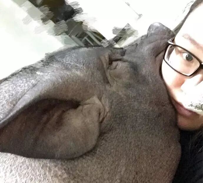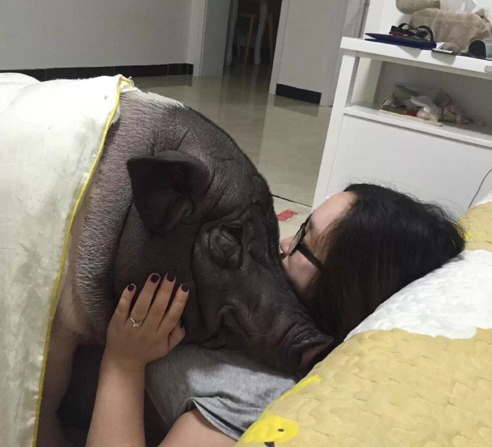 這是北京一姑娘@豬顛顛 養(yǎng)的寵物,叫五花,170斤。這位姑娘在微博中曬出她和寵物豬五花的合照后,引來(lái)網(wǎng)友的爭(zhēng)相議論。