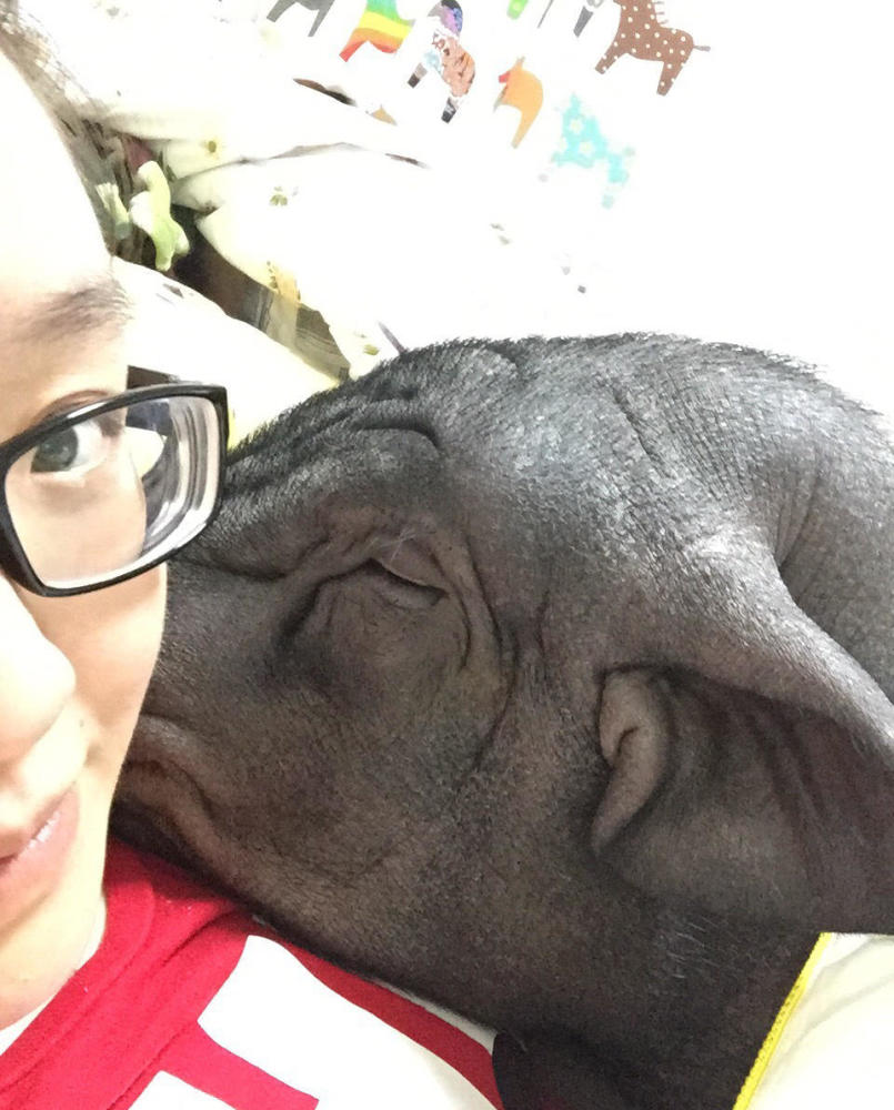 “五花170斤。”在接受采訪時(shí),@豬顛顛 表示自己在2012年大概一二月份的時(shí)候淘寶買(mǎi)下五花。而對(duì)于五花逐漸“壯大”的體型,她也稱(chēng)自己早有準(zhǔn)備,“我知道它會(huì)長(zhǎng)很大”。談到養(yǎng)寵物豬的初衷時(shí),@豬顛顛說(shuō):“我就是喜歡豬,因?yàn)槲乙残罩T。”