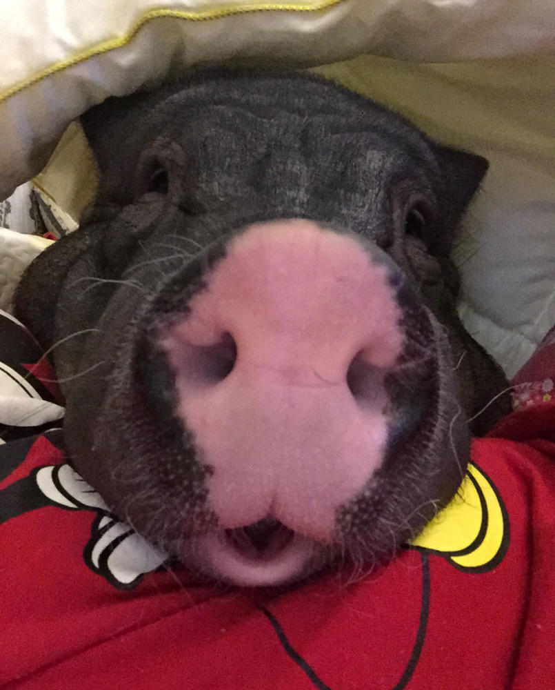 “起床!吃飯!”網(wǎng)友@豬顛顛 在叫自家小伙伴起床無(wú)果后曬出了賴(lài)床照。在圖片中,一只黑白花色豬窩在被子中,睡眼惺忪,兩只大鼻孔對(duì)著鏡頭,嘴巴微張,似乎在打哈欠。