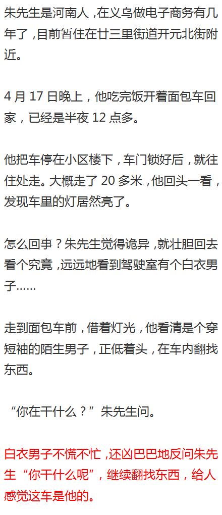 半夜,義烏廿三里一輛鎖好的車?yán)餆敉蝗涣亮耍霈F(xiàn)一個(gè)白衣人...