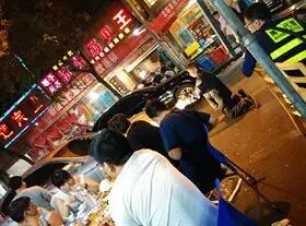 燒烤一條街,有位神經(jīng)男子收過路費(fèi)。最看不過去的是他還下跪,車?yán)锩媸俏焕贤?,寧可倒車回去也不愿給錢。丟人不?唉,丟國人的臉吖!后來造成堵車,男子被警察帶走了。悲劇。