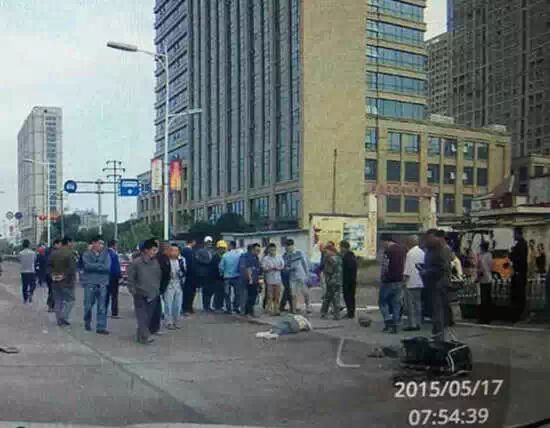 今天早上8點(diǎn)左右,在義烏廿三里開元北街與商城大道交叉口,一輛寶馬車將一騎電瓶車的男子當(dāng)場(chǎng)撞飛,男子躺在地上,腦漿橫流,估計(jì)是兇多吉少了...