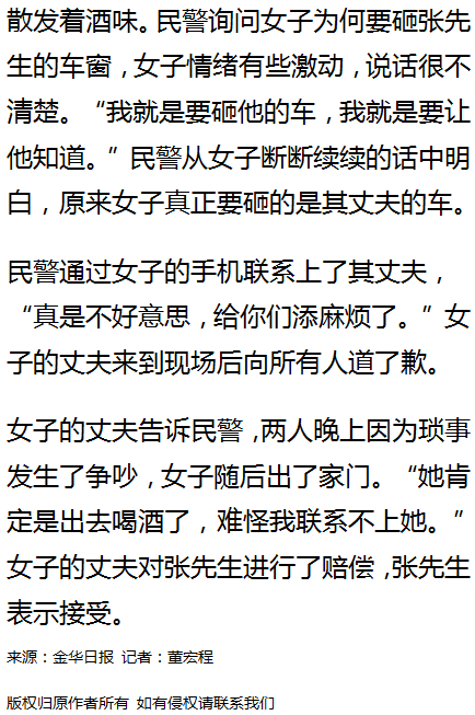 金華女子怒砸老公車,結(jié)果另一個男人哭了