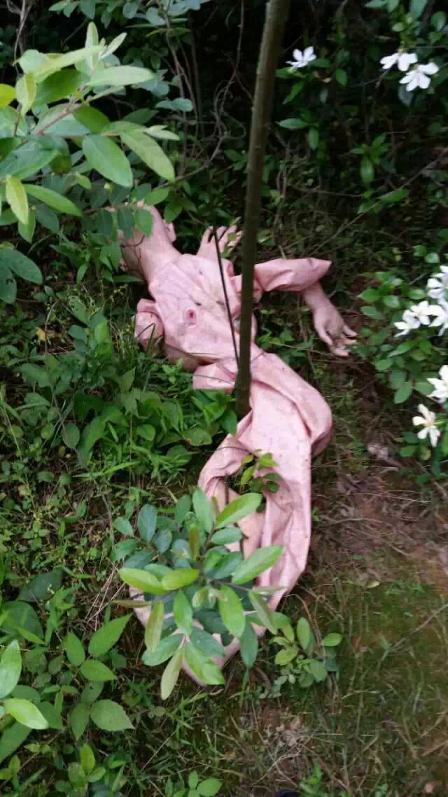 接到報警后,金華金東公安局傅村派出所領(lǐng)導馬上召集民警,迅速出警。到了現(xiàn)場,民警看到樹叢里確實有具“尸體”,兩只腳露在外面,場面有些驚悚。不少村民在旁邊圍觀,大家都在竊竊私語:“還真是一具遇害的女尸,被拋尸在這里,太殘忍了!”