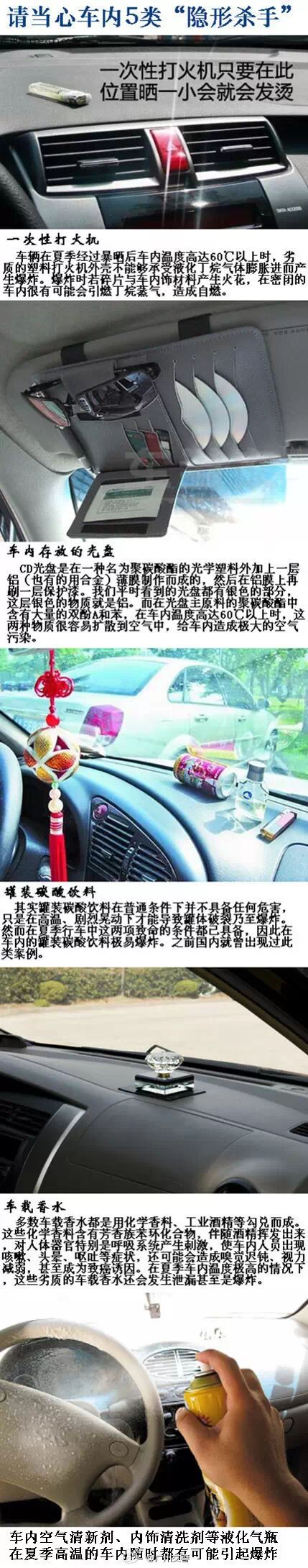 好在出事時車內(nèi)沒人。夏季是汽車自燃的高發(fā)期,為了避免自己的愛車“上火”,一定要定時保養(yǎng),而且要配備滅火器。同時熱線君為大家搜集了一些預防方法,趕走汽車自燃的“隱形殺手”。