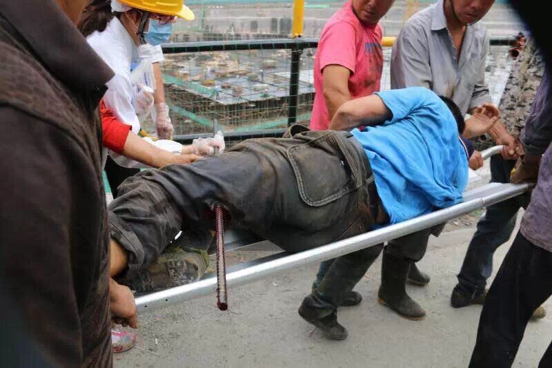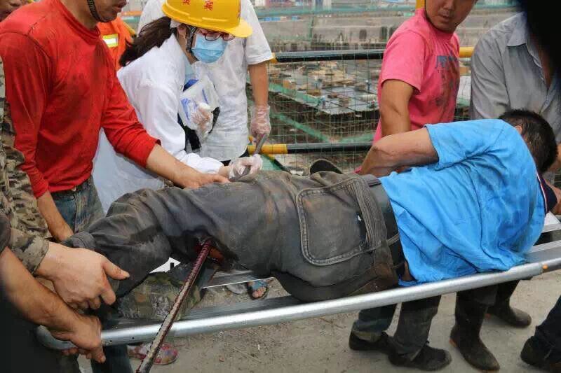 2015年5月26日8點(diǎn)35分,位于市區(qū)北門街一工地上一名工人因操作不慎從腳手架跌落,導(dǎo)致一根直徑12mm的鋼筋直接穿過大腿中心位置,義烏消防部門接到群眾報警后迅速趕往事故現(xiàn)場,利用荷馬特液壓工具進(jìn)行切割,數(shù)分鐘后,工人被救出立刻送往醫(yī)院進(jìn)行搶救。