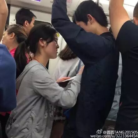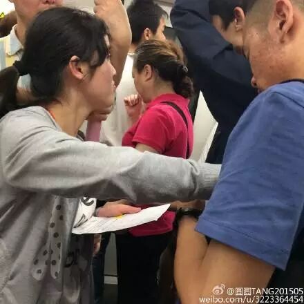 唐女士(圓圓TANG201505)17日發(fā)微博,稱13日上午10點半,她在洪廣站乘2號線去漢口,車上一名女孩走向一名穿T恤的男子,遞上本子不說話,示意他簽字“愛心捐贈”,“T恤男”捐了10元。過了六七分鐘,又來了另一個女孩用同樣的方式乞討?!癟恤男”略有些不耐煩,開始看手機(jī)不理乞討女孩。