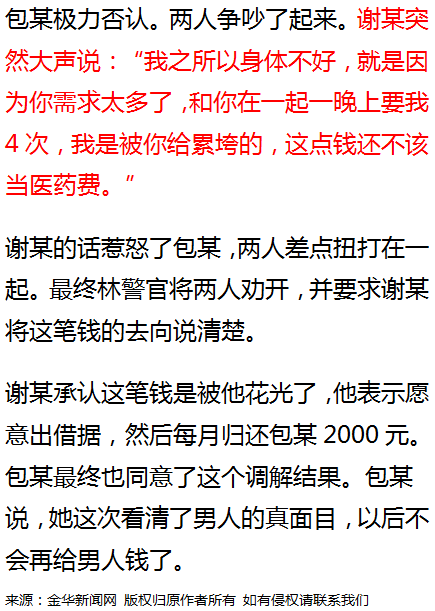 一夜4次會致癌?金華一男子向女友索要醫(yī)藥費...