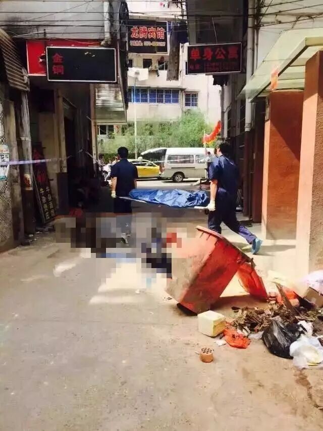 范女士(化名)在單身公寓對面開了一家飯館,當(dāng)時她正在燒中午飯:“不知道發(fā)生什么事情了,就看到警察來了很多,從樓上抬下來一個人,已經(jīng)死了,是個女的,整個人被包裹在一個藍(lán)色的袋子里。接著,又抬下來一個男的,渾身都是血,戴著眼鏡,他的胸口位置不停流血,衣服全染紅了,好像被割了脖子這里。已經(jīng)暈迷了,兇多吉少啊。。?!?/SPAN>
