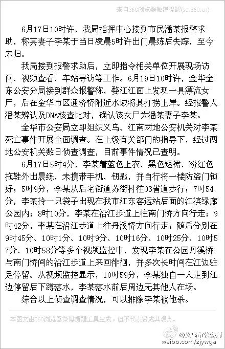 23日晚上17:57分, 義烏市公安局官方微薄@義烏稠州論壇,通報了案件調(diào)查結(jié)果,節(jié)選如下。