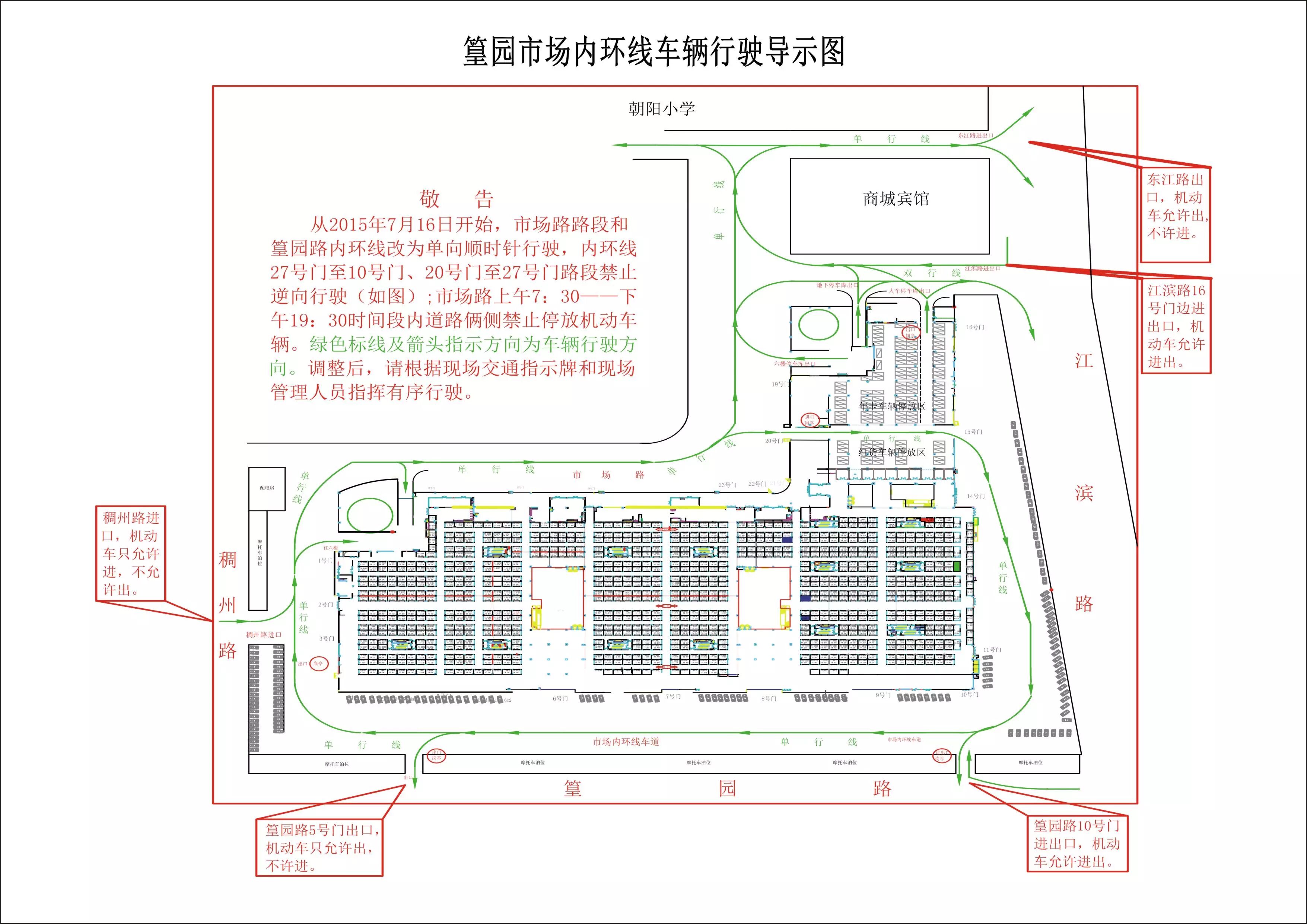 值得注意的是,商城集團也將調整篁園服裝市場前的環(huán)道交通組織,實行順時針單向通行,與市場路一起形成圍繞市場的交通閉環(huán)。封閉江濱路的市場入口,今后進入篁園服裝市場的車輛只能從篁園路、稠州路的兩個入口駛入。