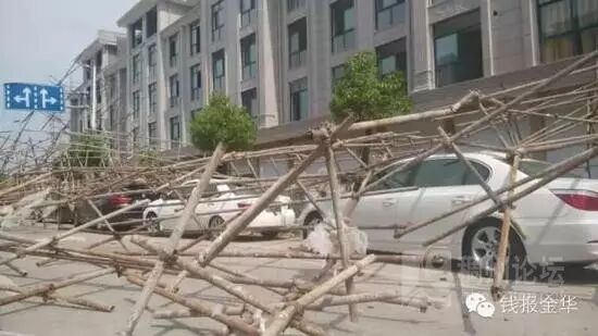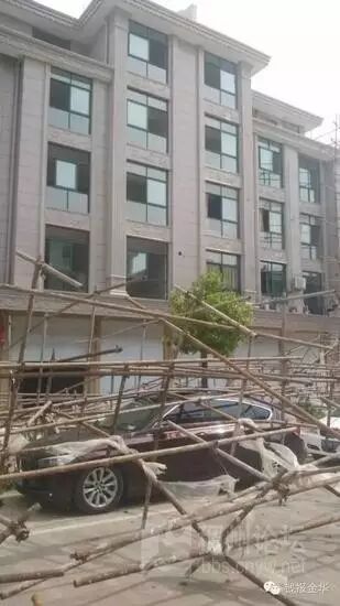 前天下午,論壇也有網(wǎng)友爆料說:“城西街道夏演伏龍山路一排店面房(流大塘新村)腳手架整體倒下,幾輛豪車被壓,幸好無造成大的事故!”