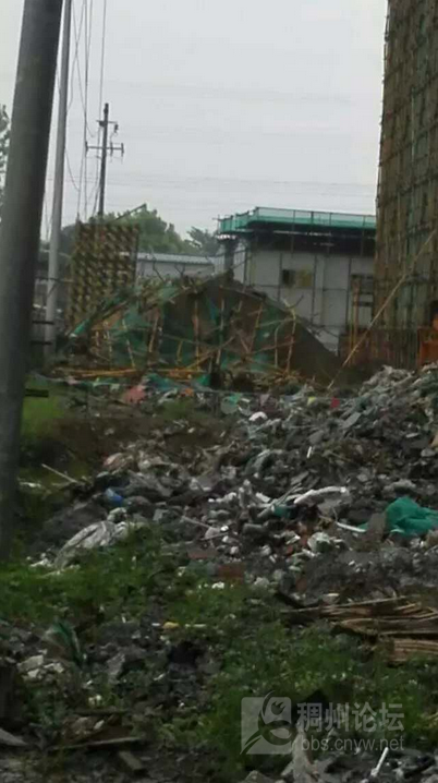 有網(wǎng)友論壇發(fā)帖爆料:“太危險了!義烏廿三里歌山建筑公司樓層外架從二十幾層倒掉了!如果有人在下面被砸到簡直不敢想象!”