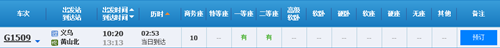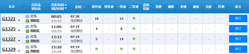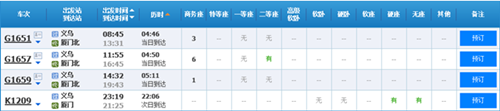 從圖中可以看出義烏到廈門北有三班高鐵,分別為