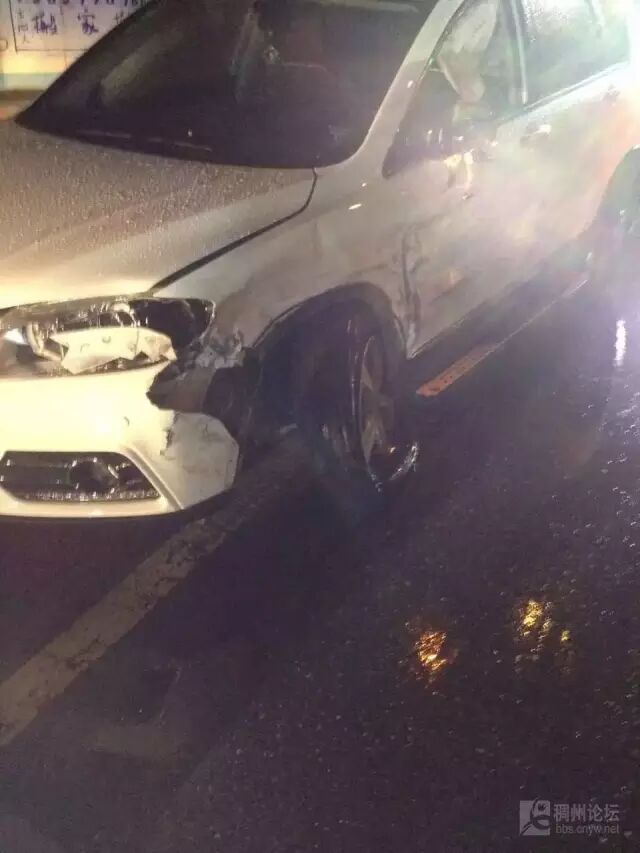 “昨日凌晨1點(diǎn)左右,戚繼光路一輛私家車和出租車相撞。出租車的后輪當(dāng)場(chǎng)沒(méi)了。私家車撞車后,繼續(xù)逃逸,由于前輪報(bào)廢,開(kāi)出500米的樣子,開(kāi)不動(dòng)了,最后私家車車主跑掉了!懷疑私家車酒駕逃逸 !”