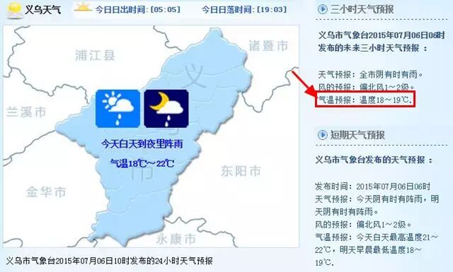 義烏市氣象臺2015年07月06日06時發(fā)布的今天天氣預報:
