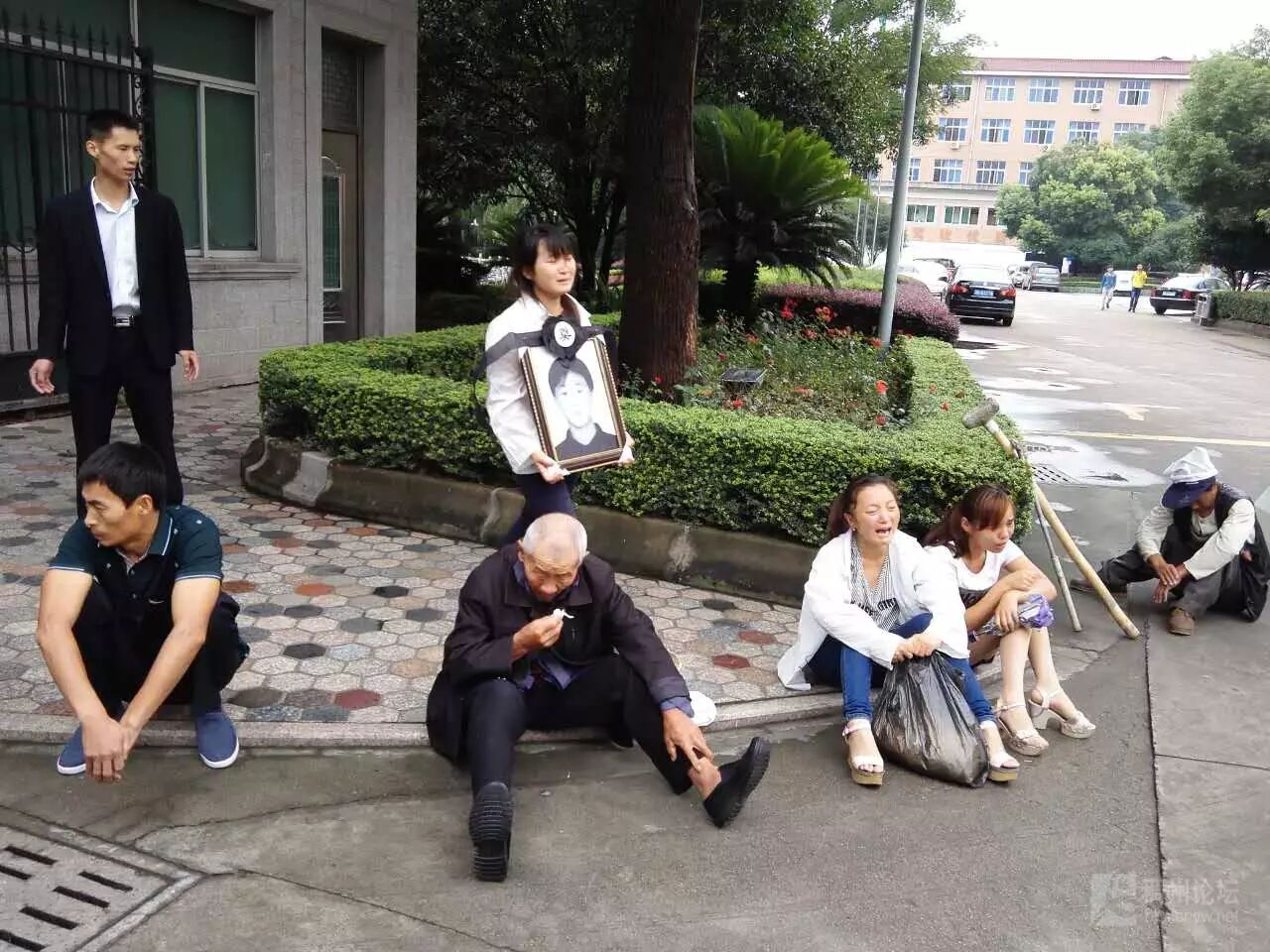 7月7號早上,死者的家屬拿著死者的遺像,來到死者生前的加工廠門口,要求老板給一個說法。
