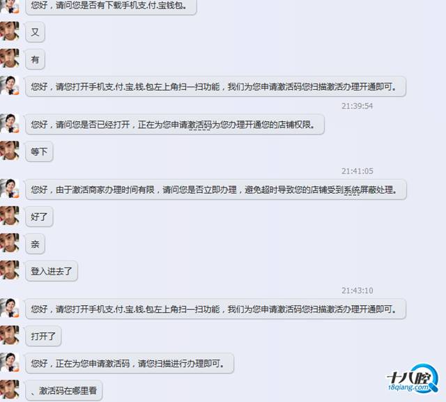 那一刻才反應(yīng)回來,我自己想想自己經(jīng)營(yíng)淘寶7年了。兩個(gè)店都沒有遇見假1賠3,要付訂金的。 立馬打電話給弟弟, 叫他先不要交易付3000保證金,后來叫他一查, 先前付的一千保證金,由于對(duì)方QQ 發(fā)了一個(gè)二維碼,錢被騙走了!