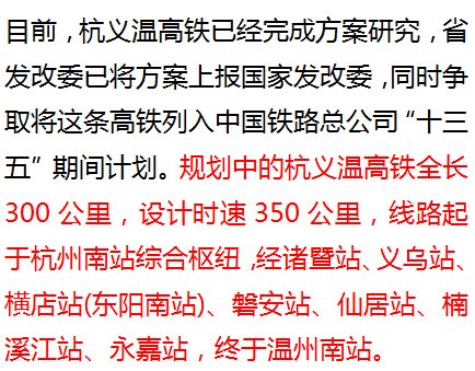 杭義溫高鐵已報(bào)國家發(fā)改委 義烏到溫州只要30分鐘!