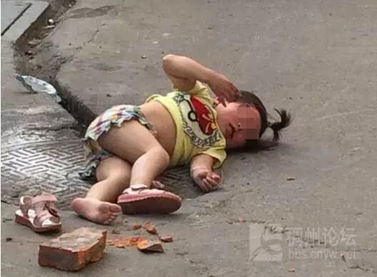從“晚風”上傳的圖片看小女孩兩三歲,地上沒有血跡,女孩在下落的過程中砸斷一根晾衣桿,摔在在一扇防盜窗上,最終落地。