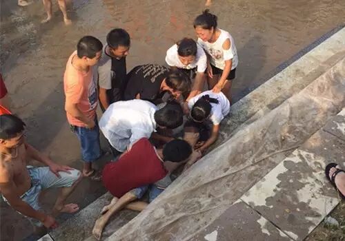 經(jīng)過(guò)1小時(shí)的打撈終于撈上來(lái)了,可惜的是孩子已經(jīng)死亡...