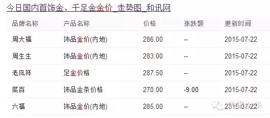 熱線君查了一下今天的金價(jià),基本都在260元/克以上。