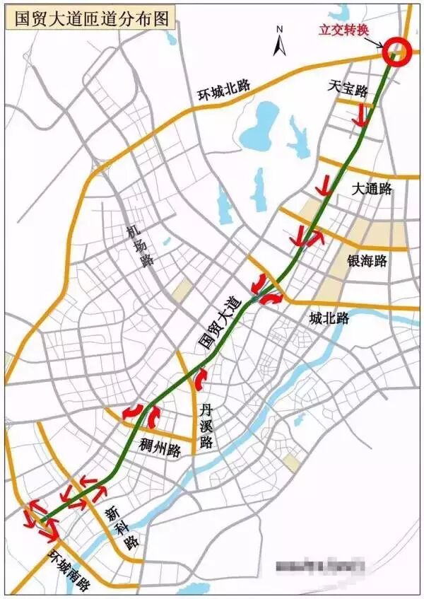 原先由南往北在誠信大道有一個(gè)可下的便道,明天,該便道將關(guān)閉,所以前往國際商貿(mào)城的車主可以選擇在城北路或銀海路下國貿(mào)大道。