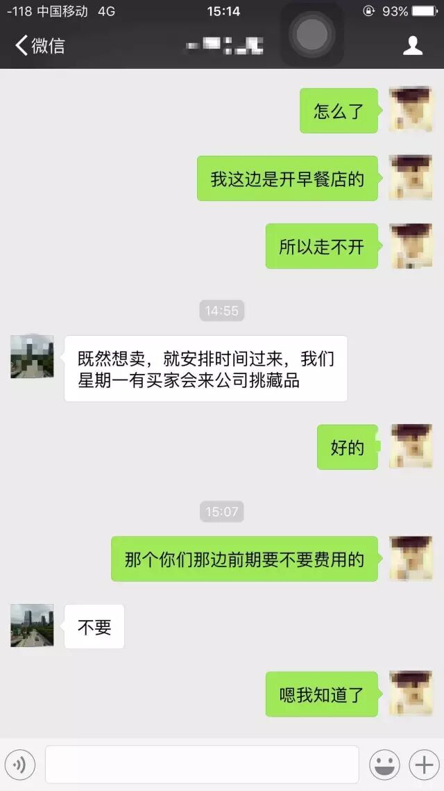 ▲上海某藝術(shù)公司的經(jīng)理催著微友去上海