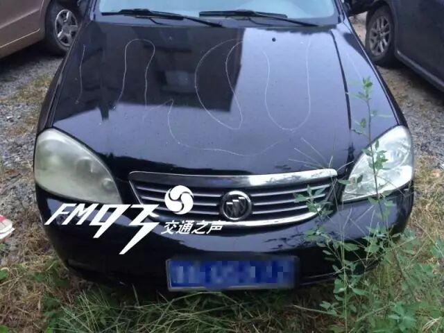 引擎蓋上大面積的起伏波浪條紋,一看就是有人故意劃的!